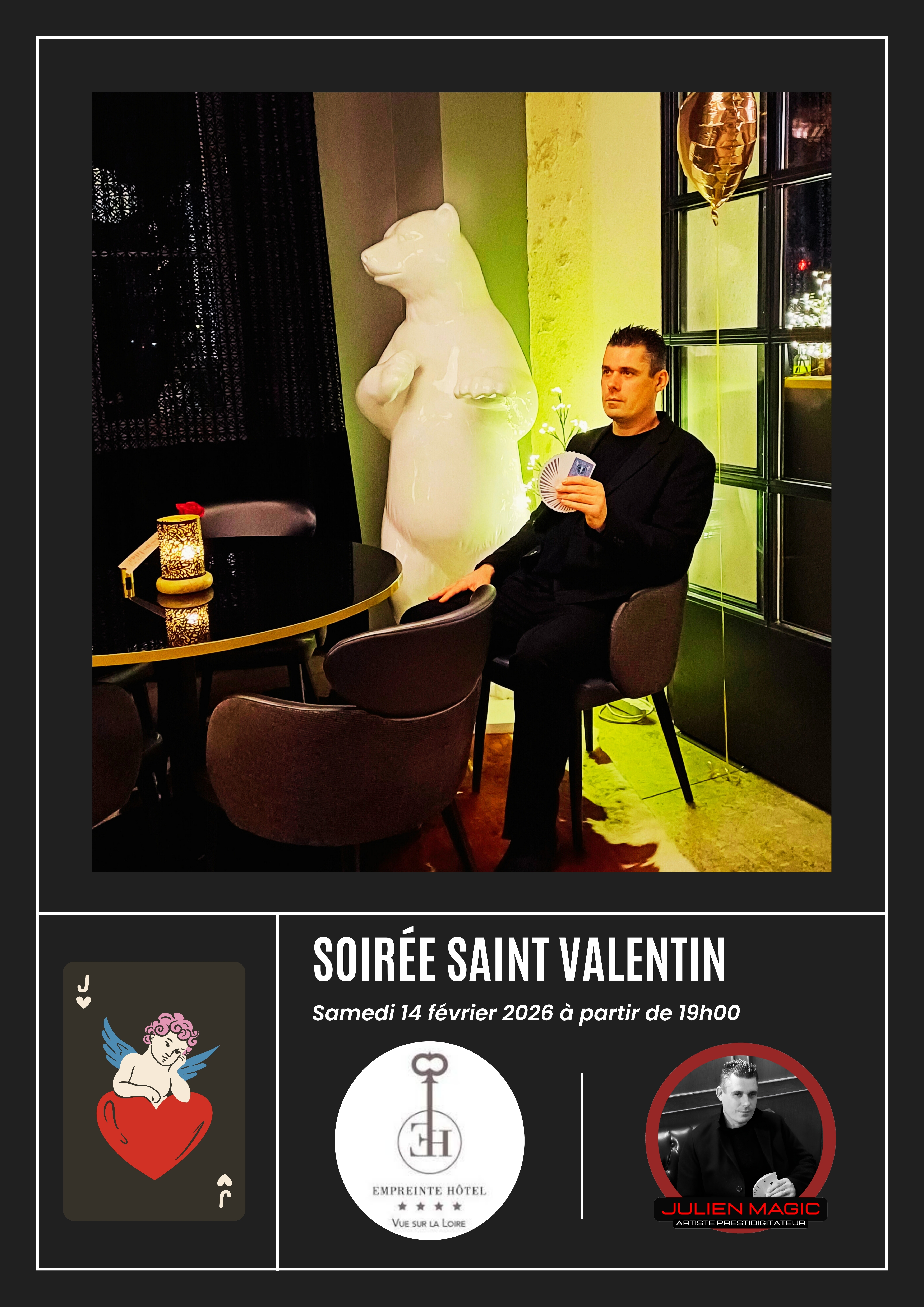 SOIRÉE D’EXCEPTION POUR IMAGINER L’IMMOBILIER D'ORLÉANS. Empreinte Hôtel Orléans, QUAI DU CHÂTELET JEUDI 12 MARS 2026 DÉAMBULATION MAGIE CLOSE-UP CARACTÉRISE UN FORMAT À PART ENTIÈRE ET SYMBOLISE LE FAIT D’OFFRIR UNE PERFORMANCE À QUELQUES CENTIMÈTRES DES YEUX.