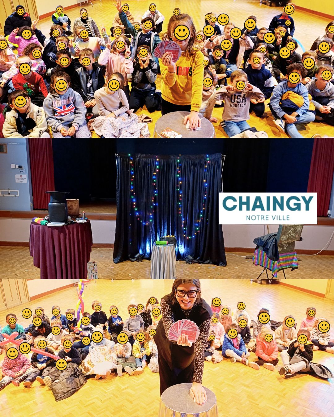 Prestation jeune public, le spectacle se compose en quatre parties, sur une durée d'une bonne heure et plus. Magie de près et de salon, sculpture sur ballons, magie de scène et final. Idéal pour les centres de loisirs, associations, et arbre de Noël. Anniversaires enfants à domicile.